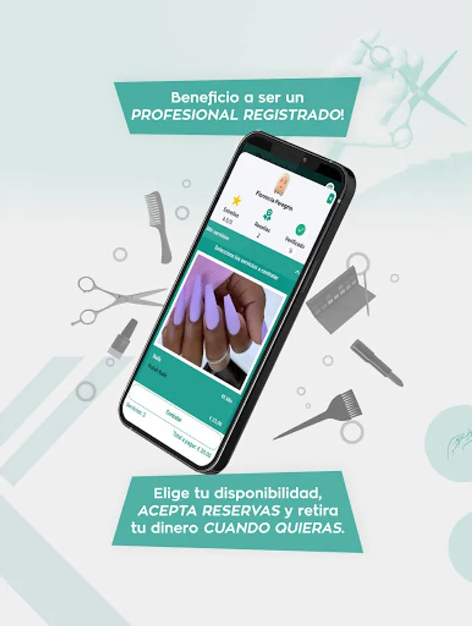 * Regístrate como profesional, pon tu disponibilidad, ACEPTA RESERVAS y retira tu dinero Al instante. ¡Tu beneficio de ser un profesional REGISTRADO!