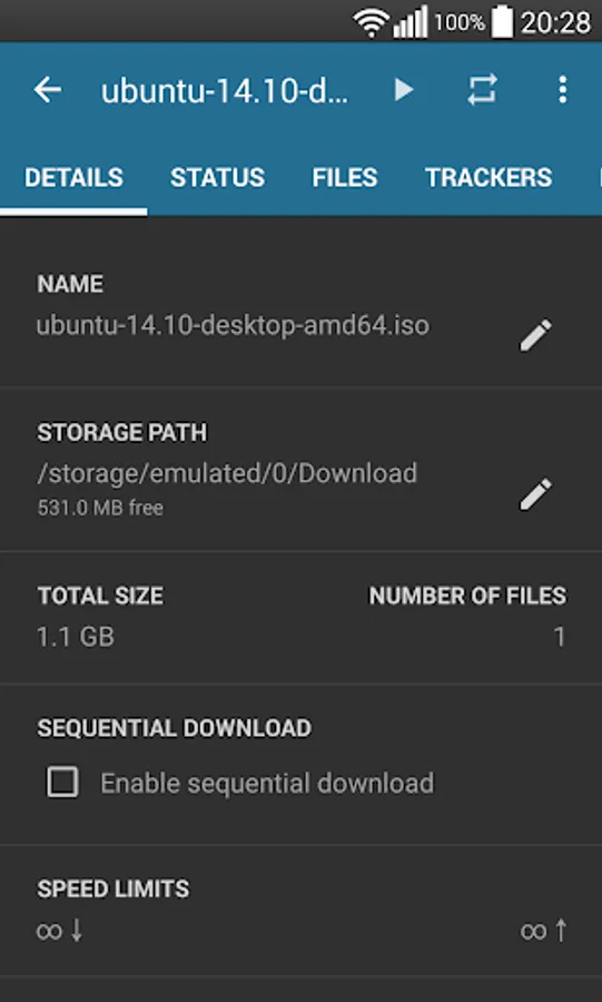 * Supports torrents with very big files (Note: 4GB is the limit for FAT32 formatted SD cards)
