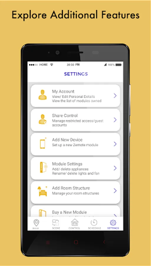 Delphy lets you take complete control of your home appliances from anywhere in the world. The App works via internet and also functions seamlessly even if there is no internet connection at your home