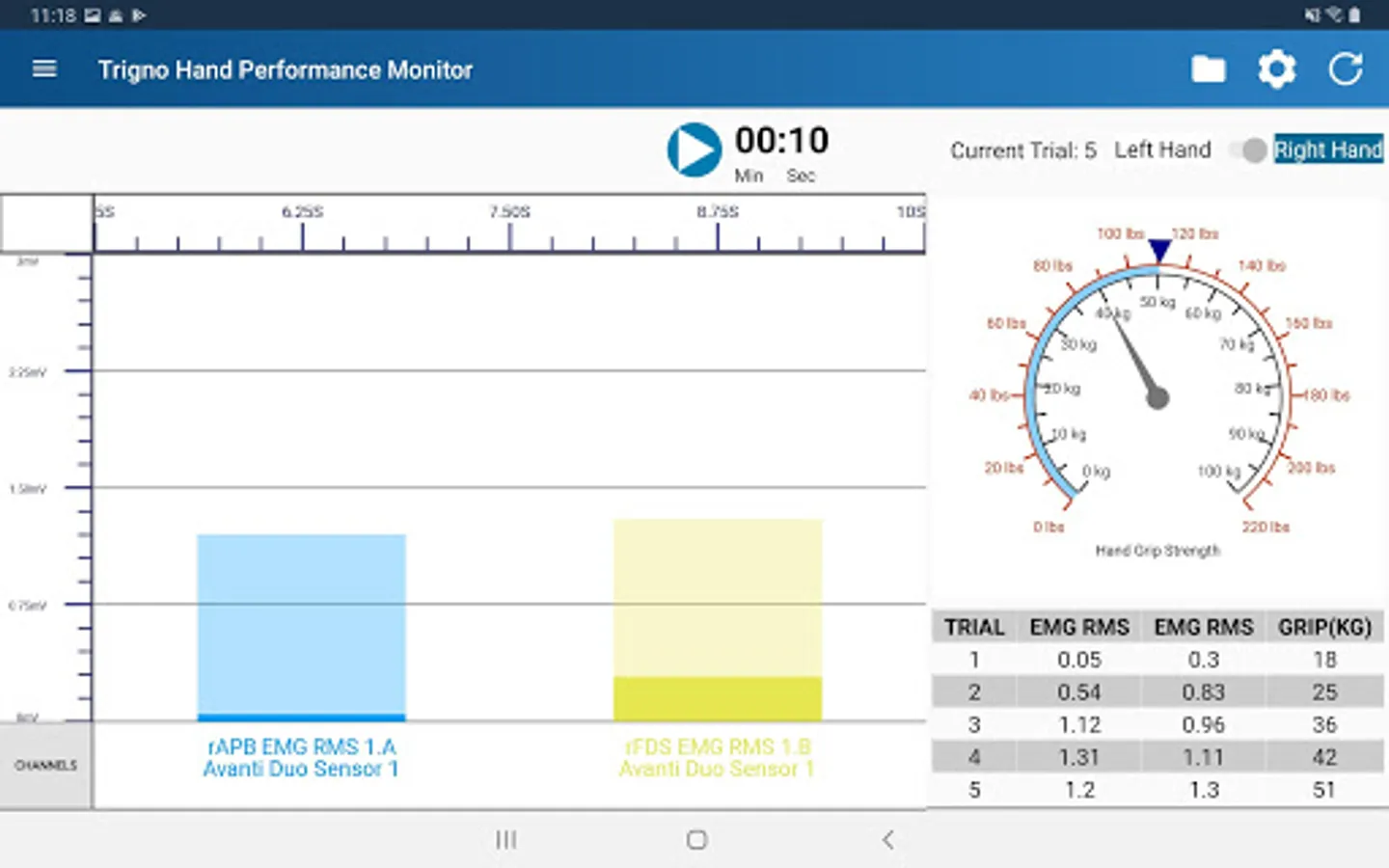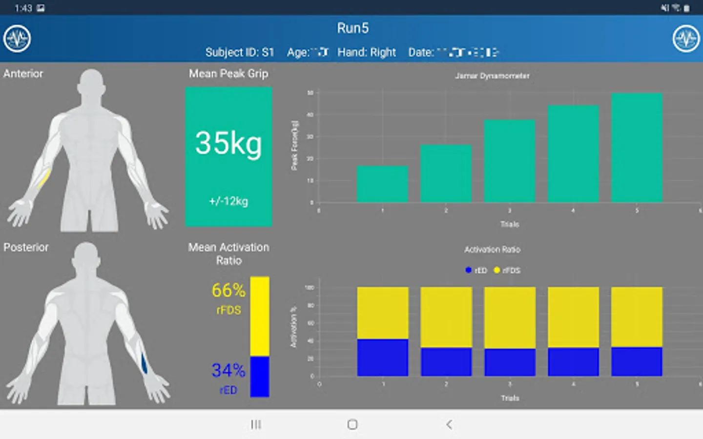 This app integrates a bluetooth compatible hand-held dynamometer (Jamar) along with the wireless Trigno sensors to collect EMG + force grip strength data on the go.