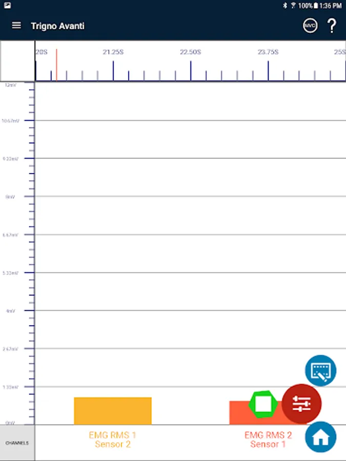 The EMG Plots app provides a lightweight Trigno Avanti experience. It allows users to directly connect to sensors via Bluetooth, for previewing and recording data from muscles. Data is presented in modes ranging from traditional line charts to human body overlays. Featuring Signal Quality Check and Maximum Voluntary Contraction modules, the Avanti app is a full biofeedback solution.