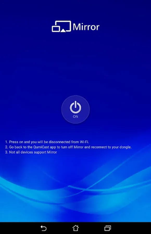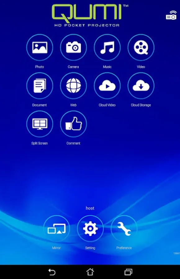 QumiCast is an innovative software App that acts as a streaming bridge between the Qumi Q6/Q8 and a mobile device (Smartphone, Tablet, Computer) for big screen wirelessly content projection.