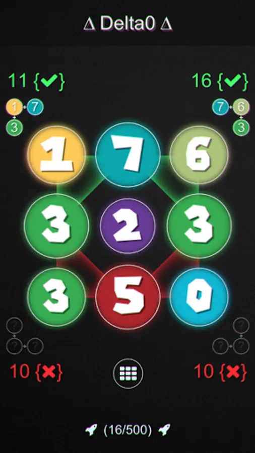 [TL;DR] You need to get the same number as what you see in the corner based on the sum of the 3 circles connected by a triangle.
