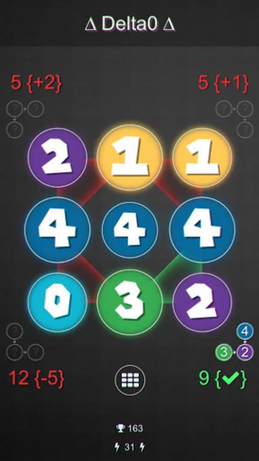 The level is completed when you get a Delta0 for each corner (4) (your sum = sum expected).