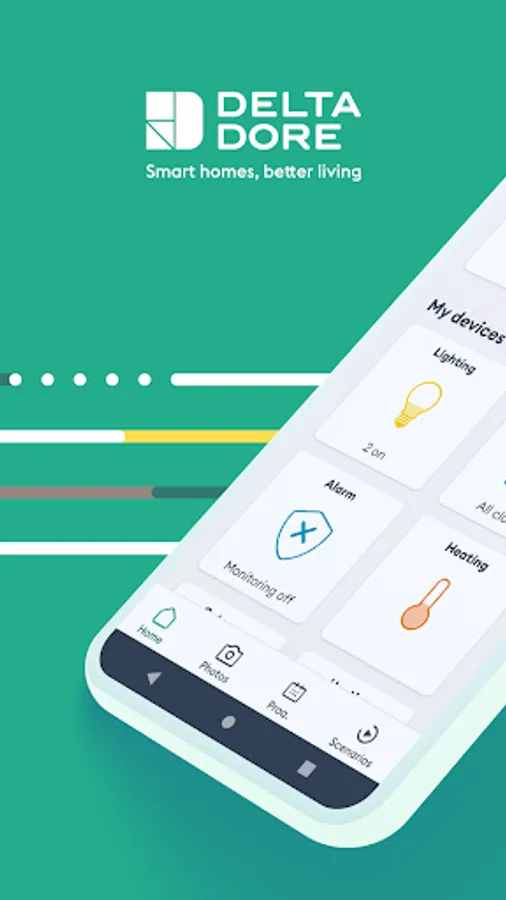 To function, the application requires the installation of a home automation box TYDOM 1.0 or 2.0, no subscription, and DELTA DORE wireless products. Visit deltadore.fr to find a recommended installer.