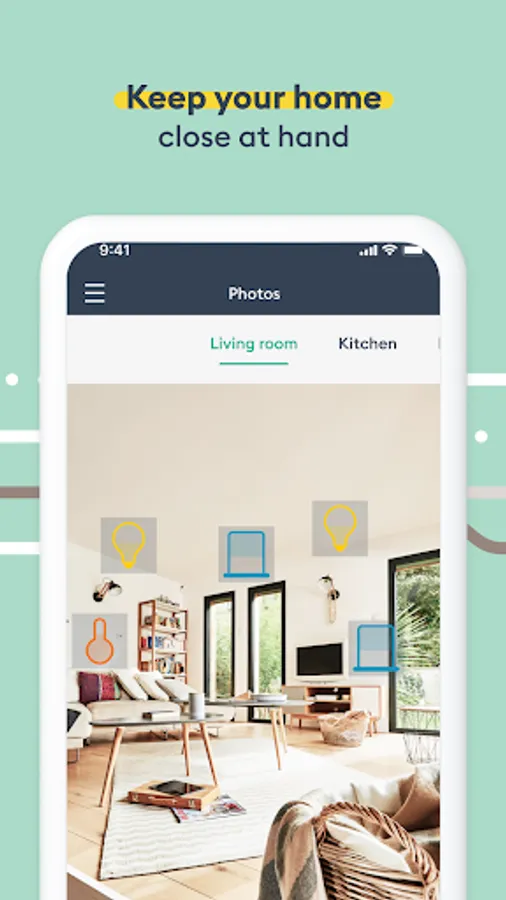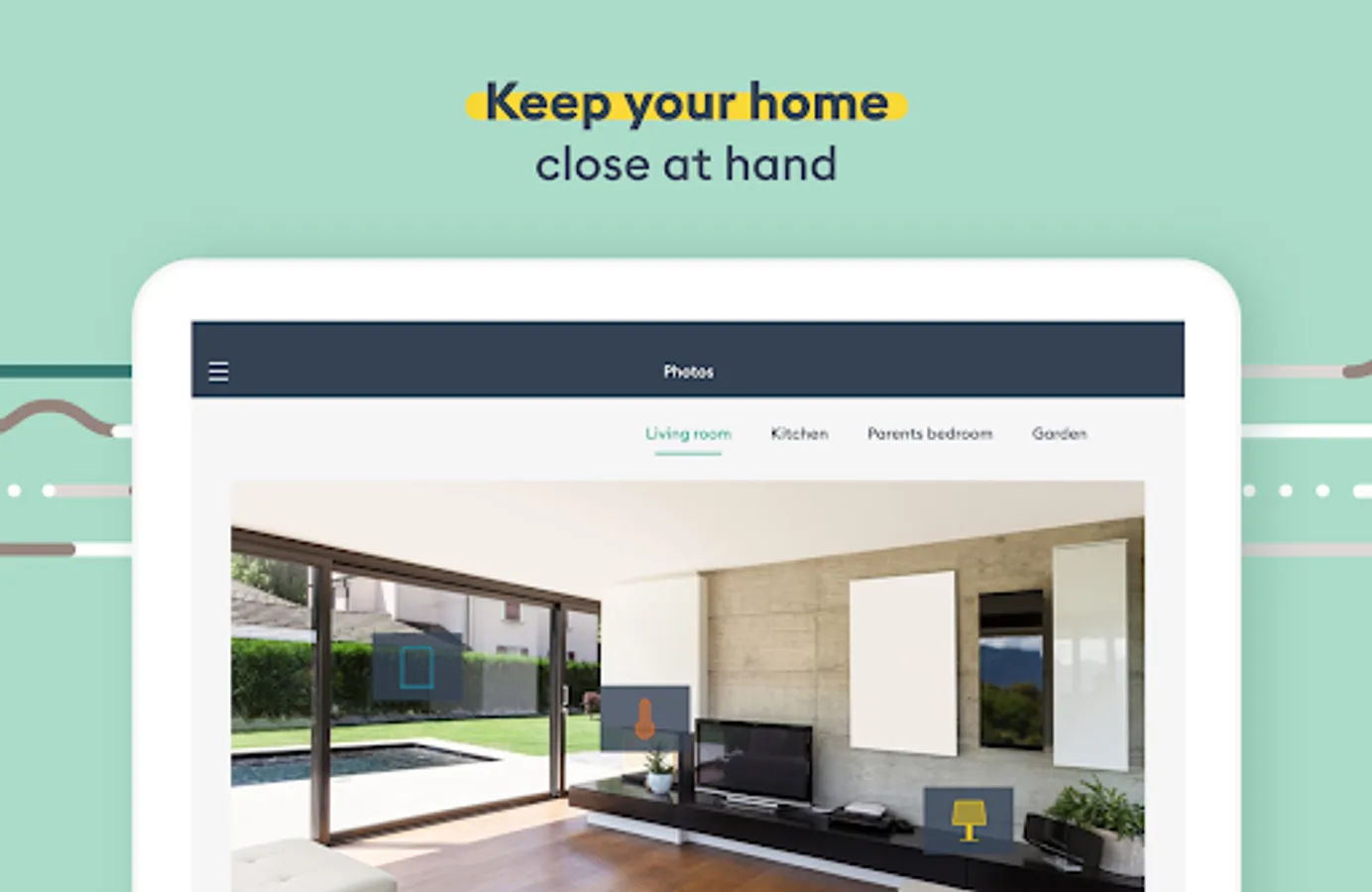 Include photos of your interior, add the control icons of your connected devices and monitor them wherever you are!