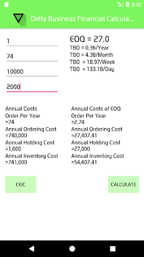The calculator provides functions such as basic computing functions and TVM , Statistics, EOQ , exchange rate conversion, interest rate conversion, NPV , IRR ,Black scholes, Bond Duration .