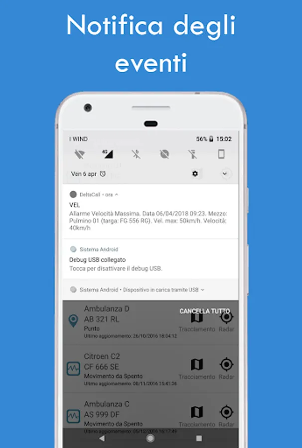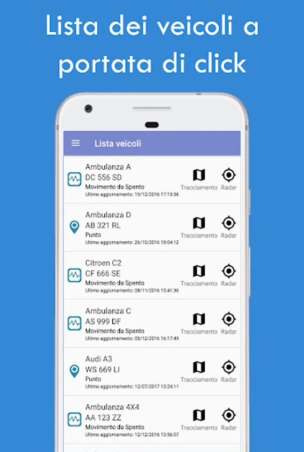The App allows you to view the routes taken by the association means in a user-selectable period of time and monitor in real time the movement of the same.