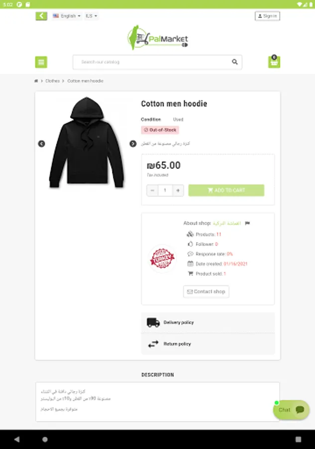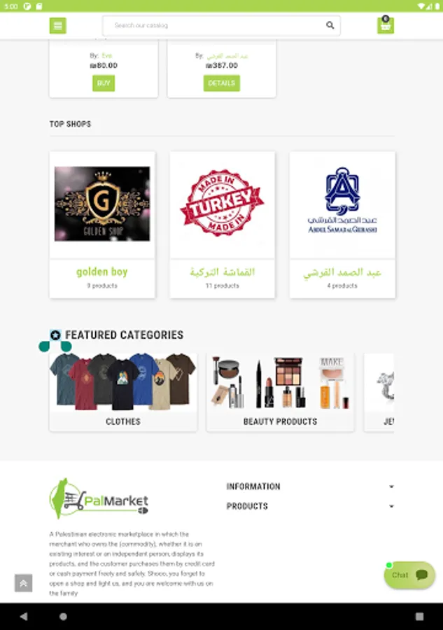 A Palestinian electronic marketplace in which the merchant who owns the commodity, whether it is an existing interest or an independent person, displays its products, and the customer purchases them by credit card or cash payment freely and safely.