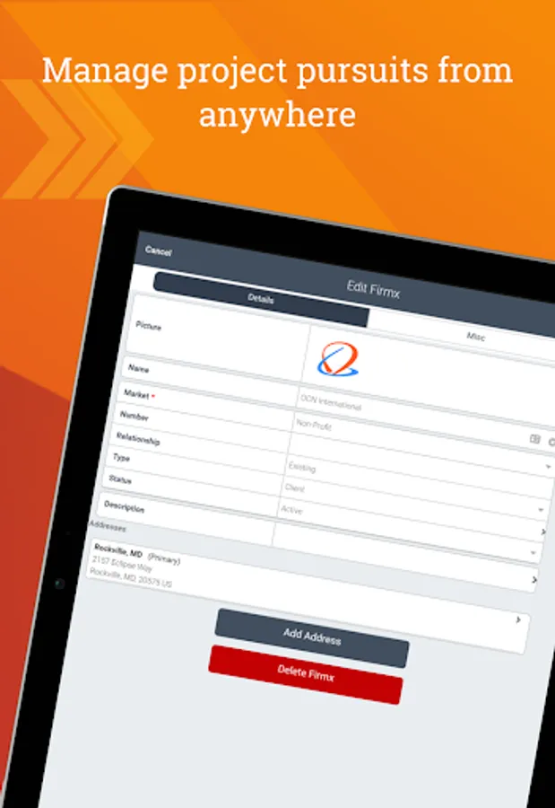 Deltek Client Relationship Management (CRM) users have access to critical client and pursuit information from their mobile device. With the Deltek CRM for Vantagepoint mobile app, teams have instant access to pursuits, firm details, contact information and activities from anywhere, at any time. Help keep all of your team members informed and turn more pursuits into projects with access to key business development intel on the go.