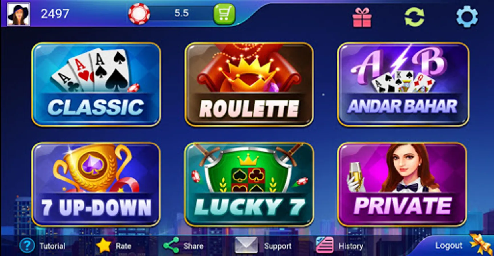 This app also has Roulette, Andar-Bahar, Lucky7 and Seven up-down along with Teenpatti.