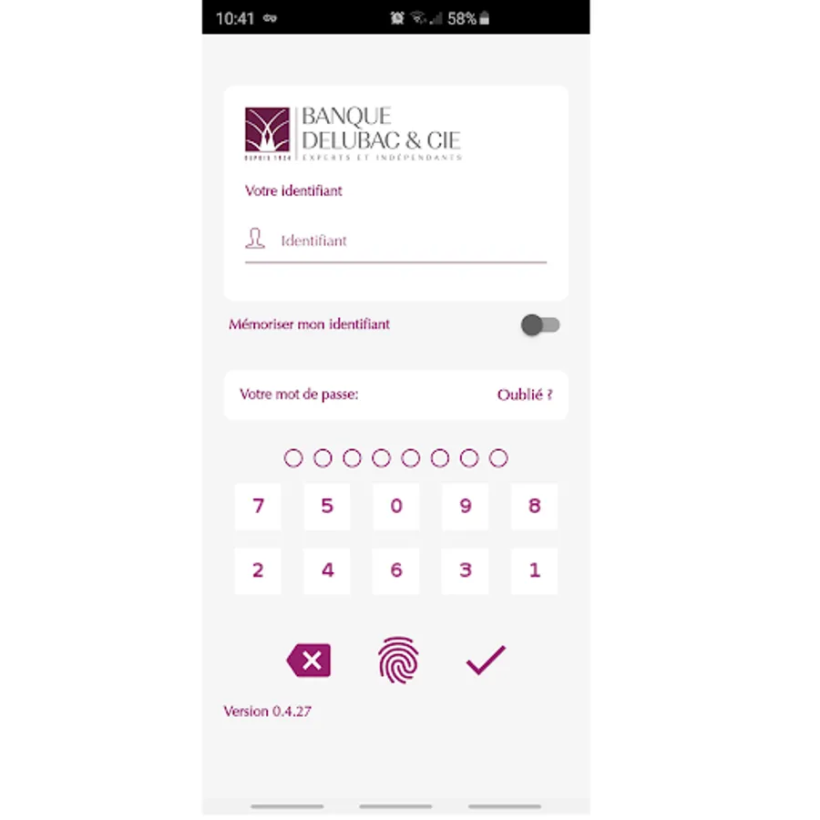 The connection to the eDelubac app is possible by virtual keyboard (login / password) or by fingerprint.