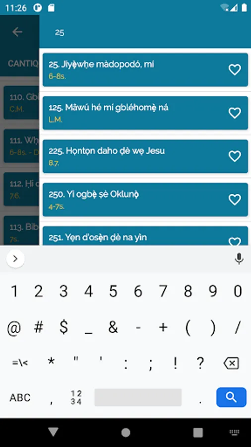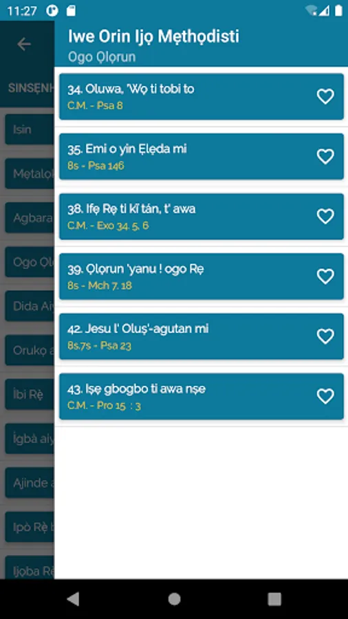 5. Set your favorite hymns just by clicking the heart icon on the menu bar;