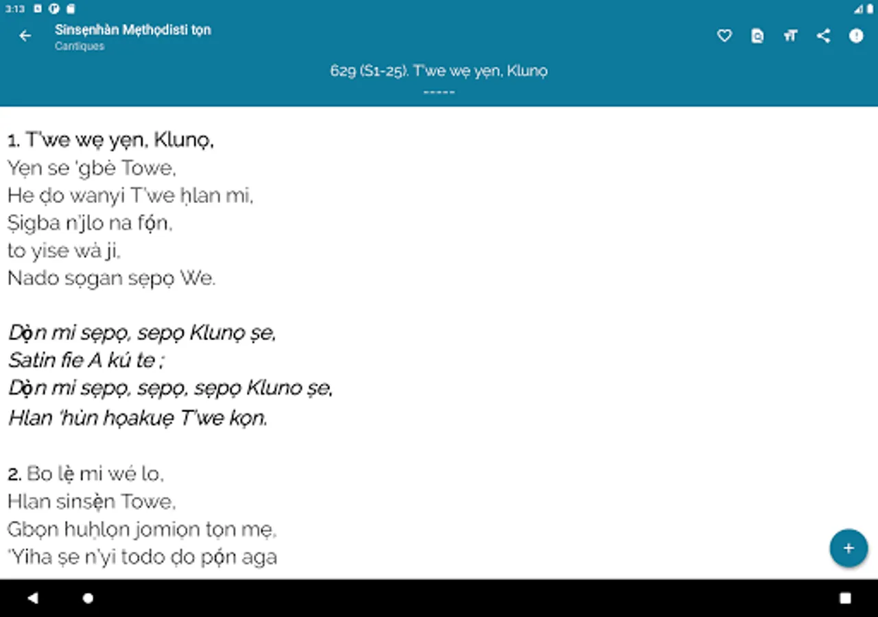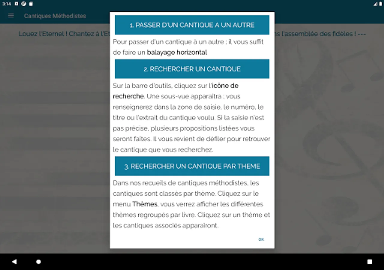 Cantiques Méthodistes is the mobile version of the collections of Methodist songs in: