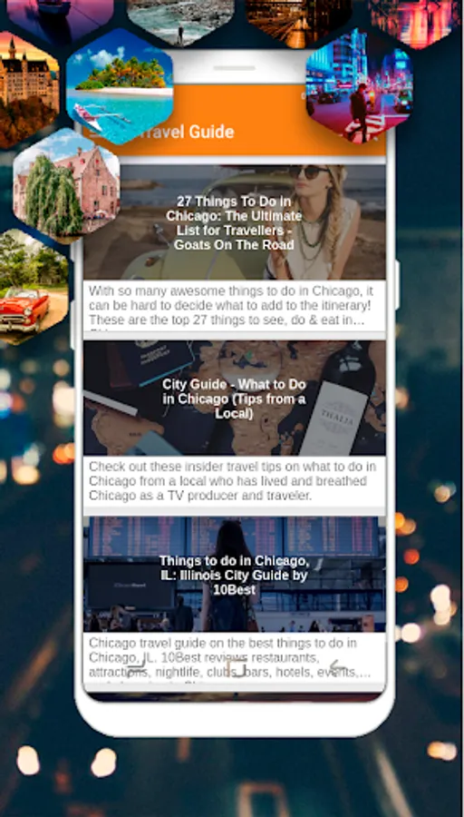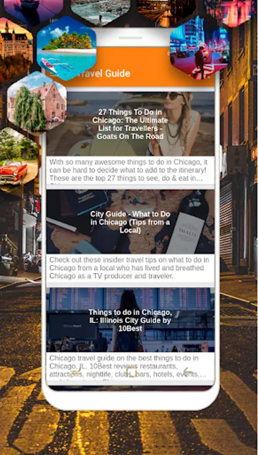 Chicago Guide. Lists of Top Things to Do in Chicago. (includes offline mode and text to speech). In the application you will find numerous articles, such as the following: