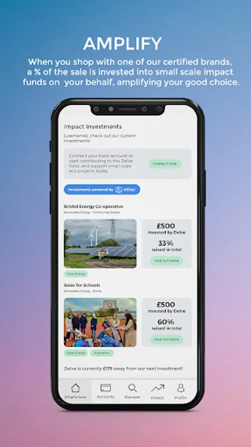 When you activate an impact reward and make a purchase with one of our ethical brands, Delve receives a fee which is invested on your behalf into community scale energy projects in the UK. We only invest in projects with a clear and credible impact model, transparent governance, and an intention to become commercially self sustaining. With every change you make through Delve, our goal is create a domino effect of positive consequences that increases in impact at every step.