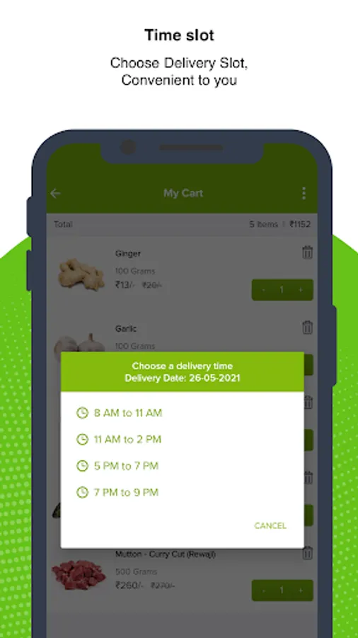 1. Order before 9 pm & get your products delivered on next day on your selected time slot.