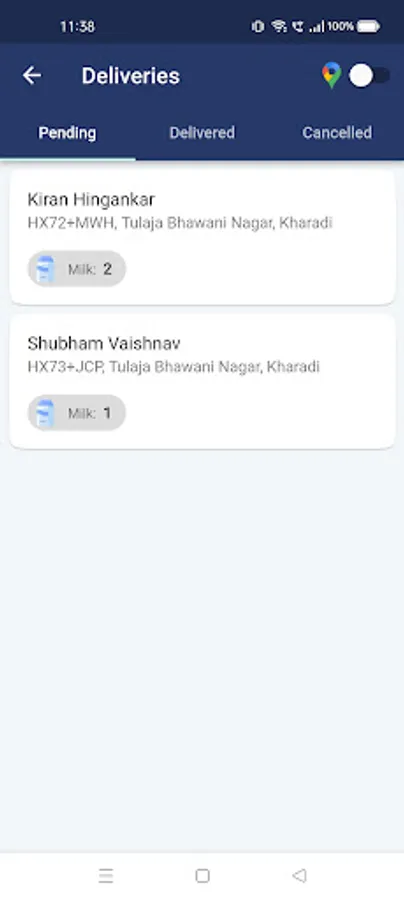 Delivery boys can also log in. Delivery boys will have a list of deliveries and they can mark as delivered or canceled. Delivery boys locate customers on google map while delivering.