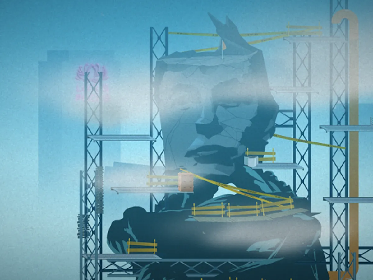A visually and sonically rich, calm and funny experience. Each level contains post-apocalyptic environments with destroyed brutalist monuments, neons referring to current social events and Silicon Valley, graffiti, alternative pathways, and one unexpected character.