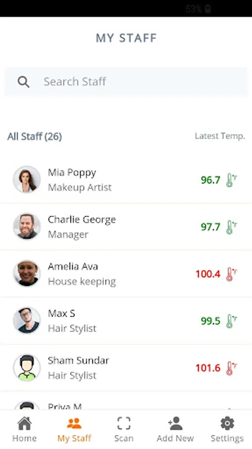 Businesses track employees' temperature on a daily basis and monitor all parts of their assurance program through a real-time dashboard.