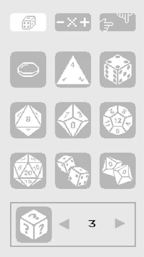 Includes from 1 to 20 counters, coin and dice from 4 to 20 sides, as well as a customizable die (from 3 to 1000 sides) and a player selector.