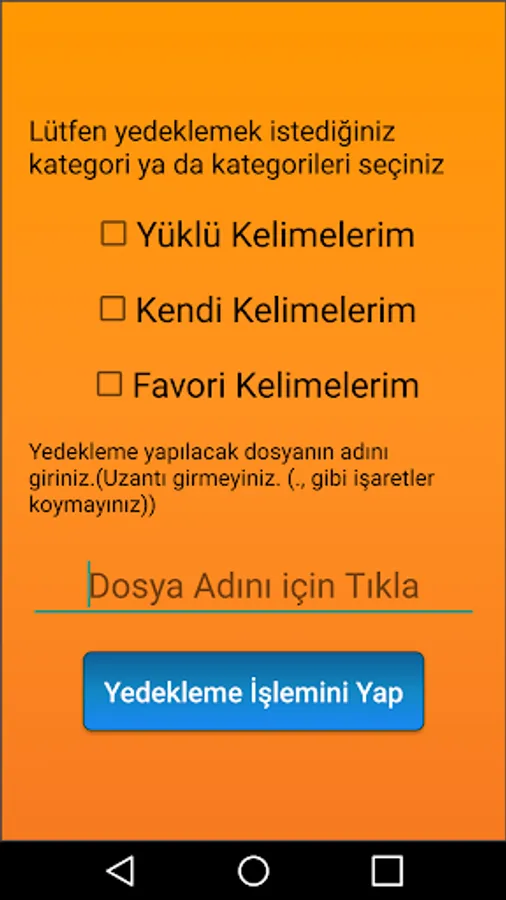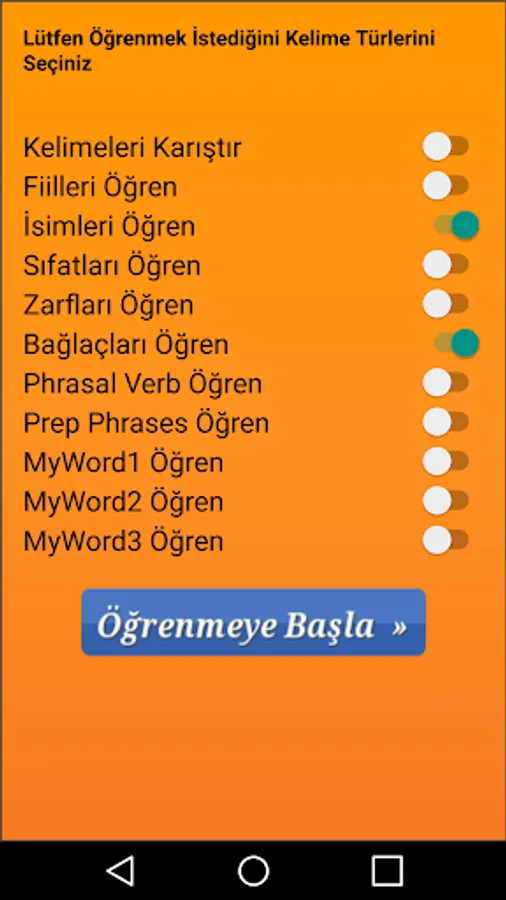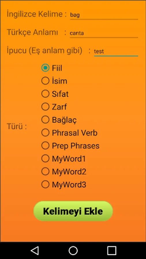 words that ►İste "add to favorites" option you can add to your favorite and you can create your own favorite. Besides this you can also test your favorite word. And yet the number of choosing your own question. (15 whether the number of questions 200. Choose your istersenizde yourself whether you are testing the 4 questions)