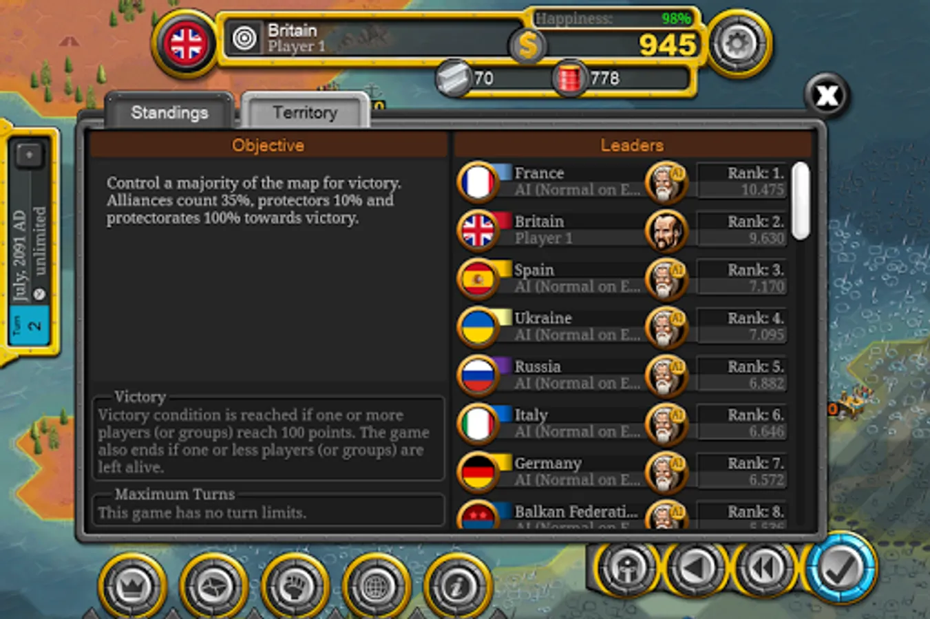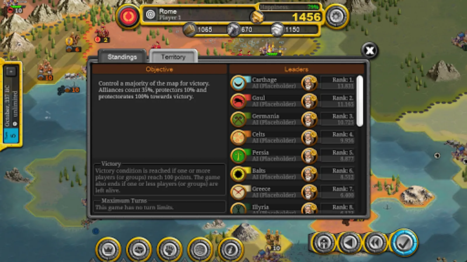 Demise of Nations is a 4X turn-based grand strategy wargame covering the rise of Rome till the fall of modern civilization. Command your armies in one of the many ancient and modern countries including the Roman Empire, British Islands, Germany, Japan or the United States. From Rome to modern nations, you create your own warring experience. Wage colossal wars solo, against the AI, or take on your gaming friends in cross-platform multiplayer games. Form alliances and fight co-op style with the AI and other players for ultimate victory.