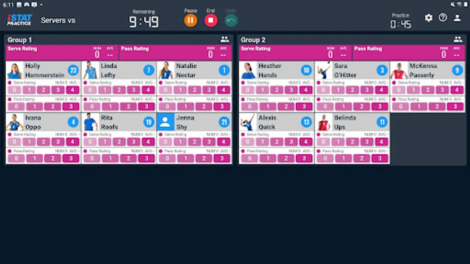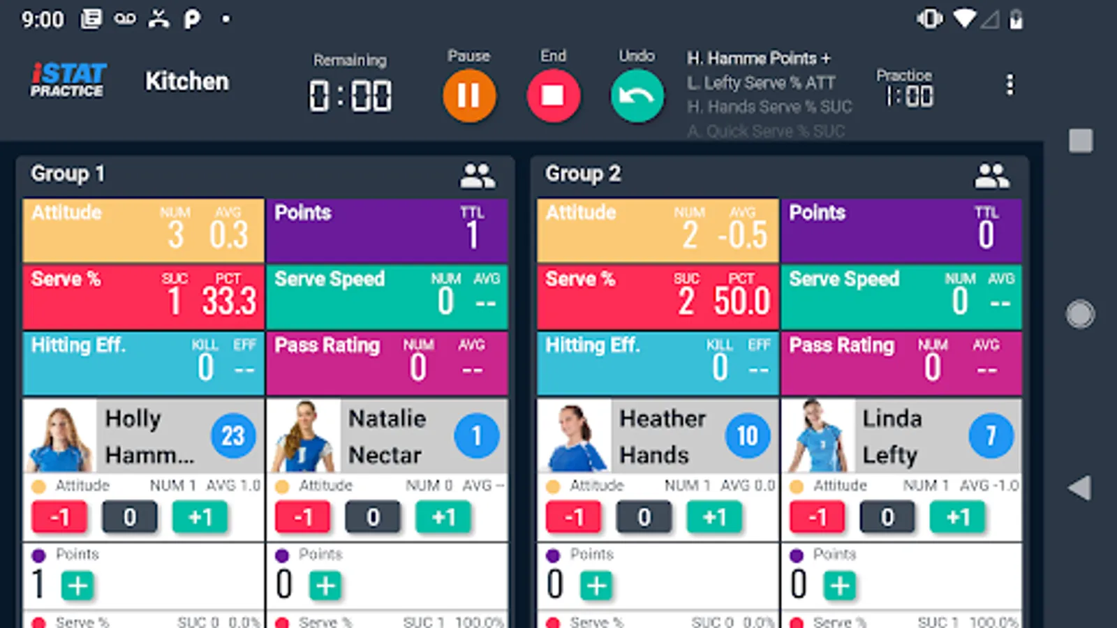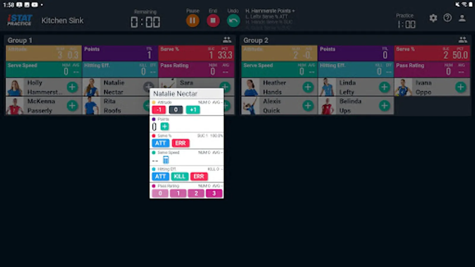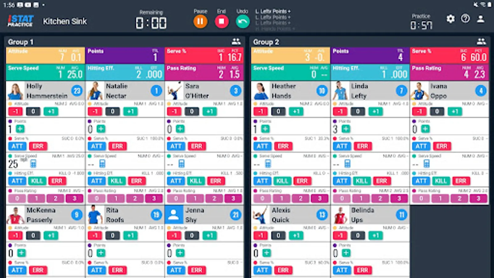 iStatPractice allows you to track metrics for all your skills and drills, and then analyze them for just an individual drill, or across a practice, across an entire season, or even across an entire career.