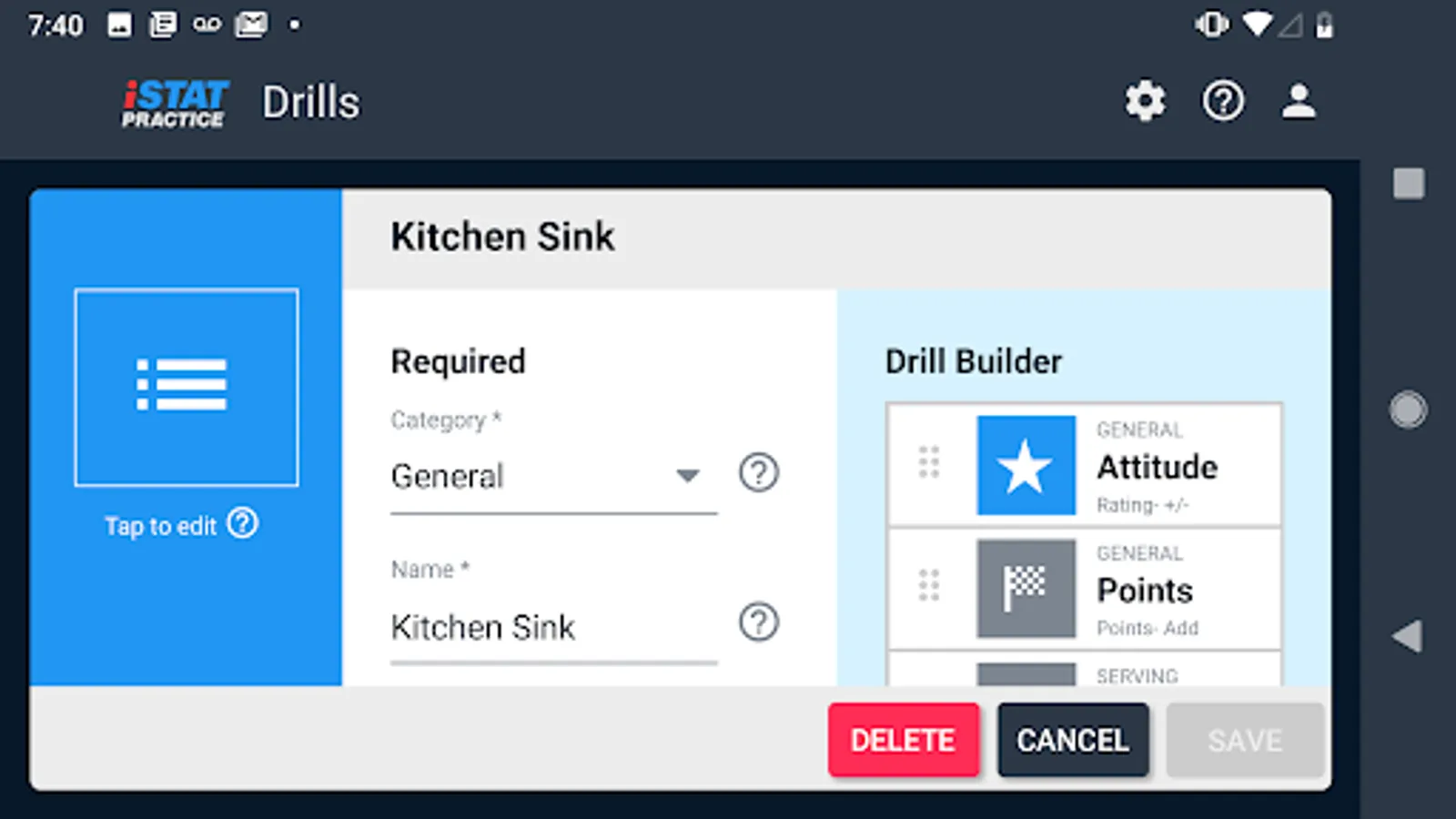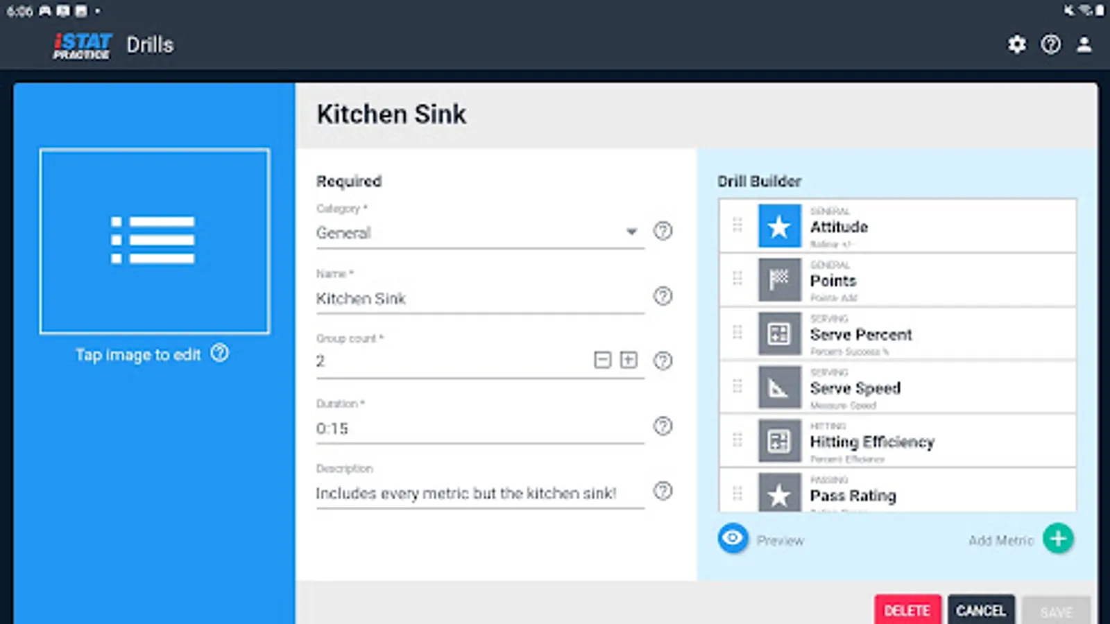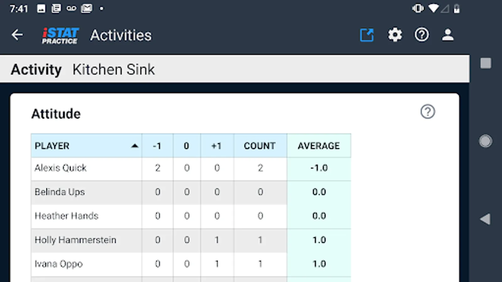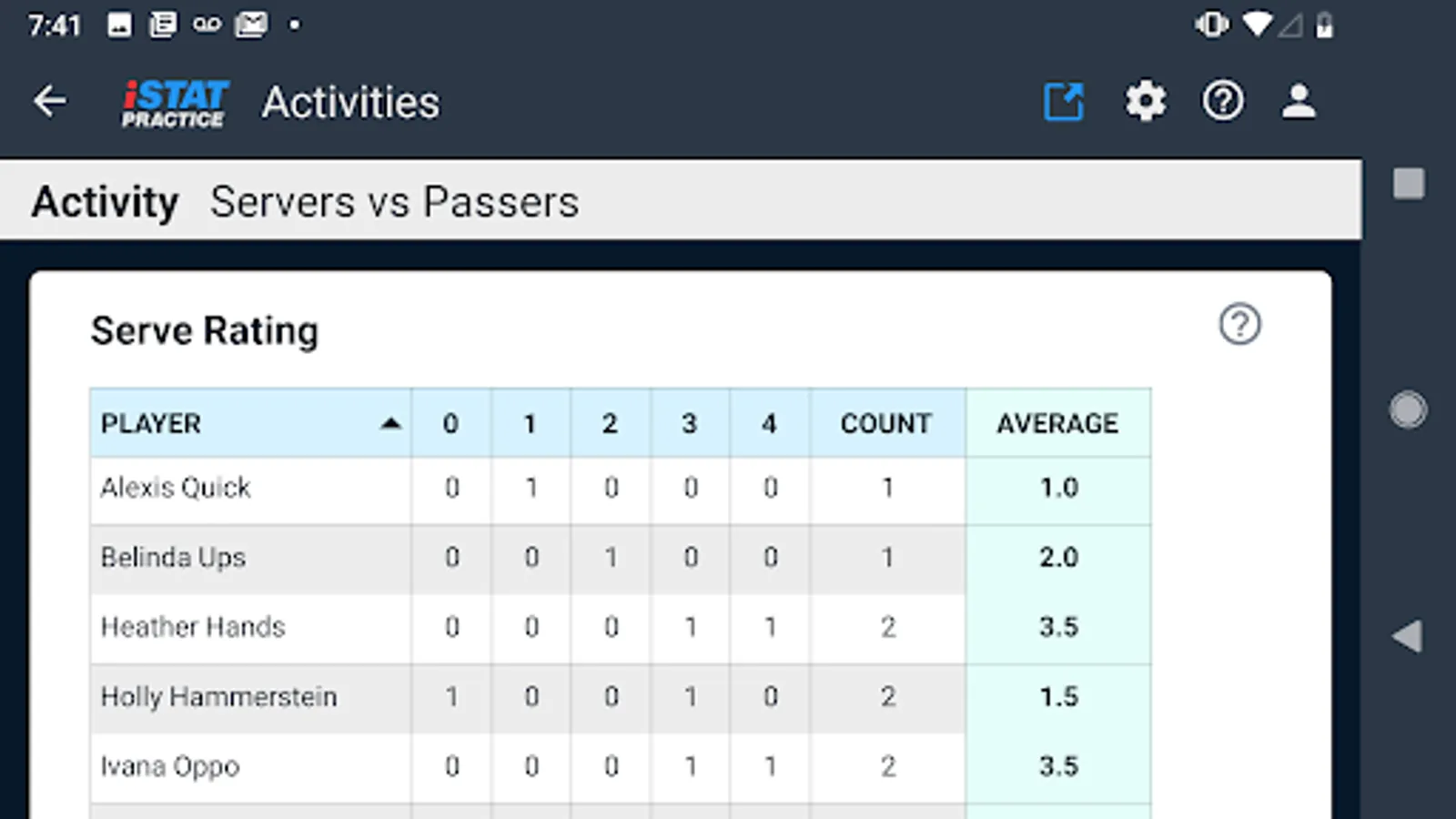 iStatPractice allows you to track metrics for all your skills and drills, and then analyze them for just an individual drill, or across a practice, across an entire season, or even across an entire career.