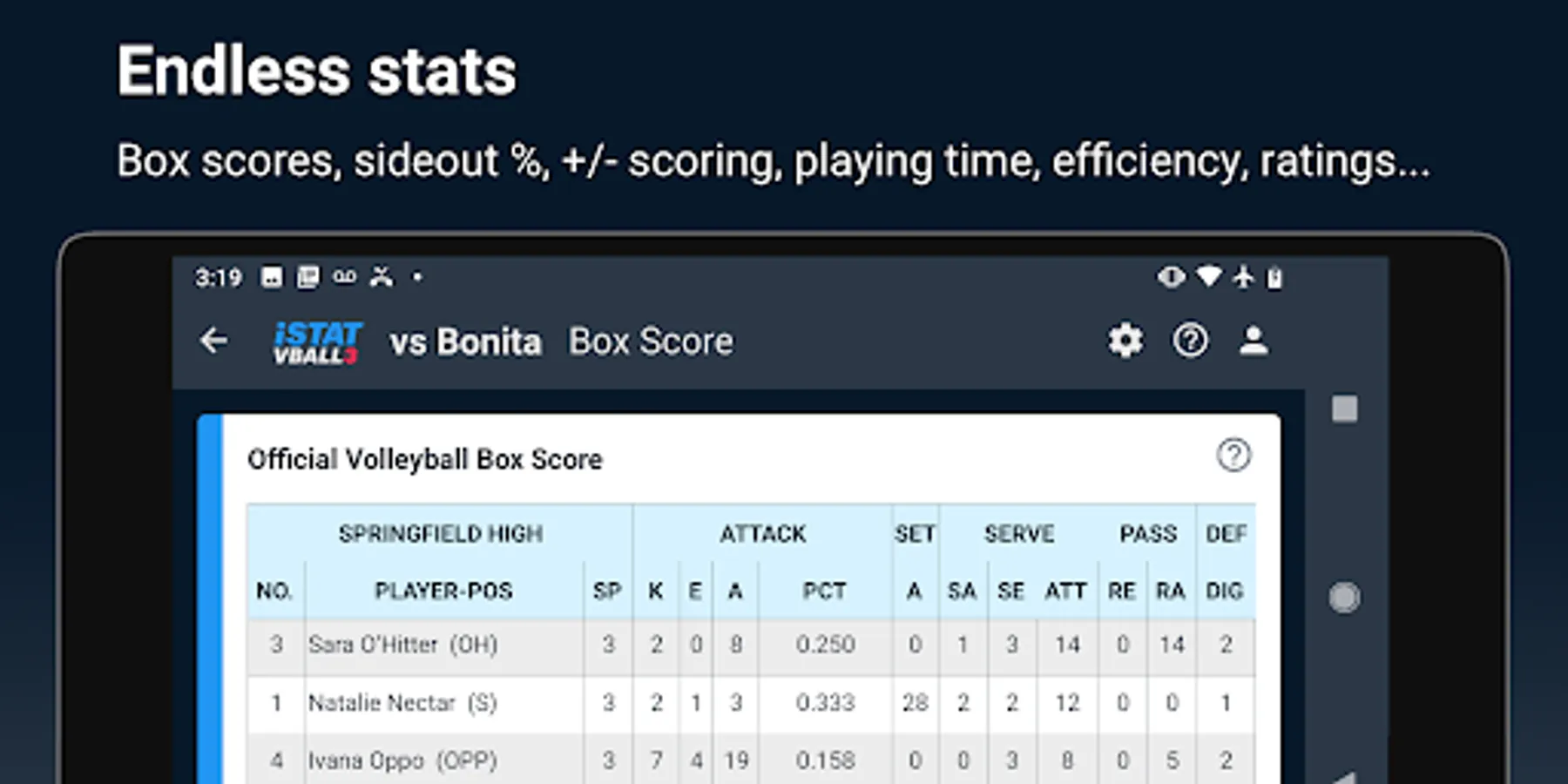 iStatVball™ 3 brings these stats to you at a fraction of the cost and learning curve.