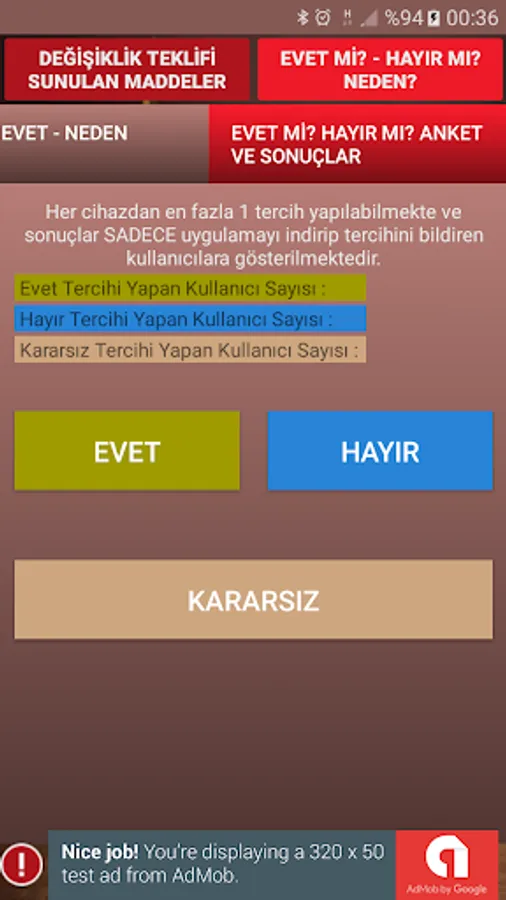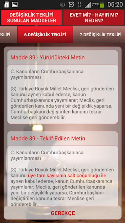 You can see the changes in the Constitution that will be voted in the coming period with this application, you can select and interpret your preference through the survey.
