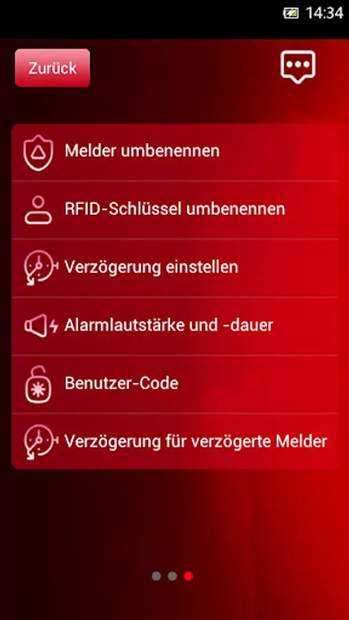With this app you can easily change the following basic settings of your alarm system from your smartphone: