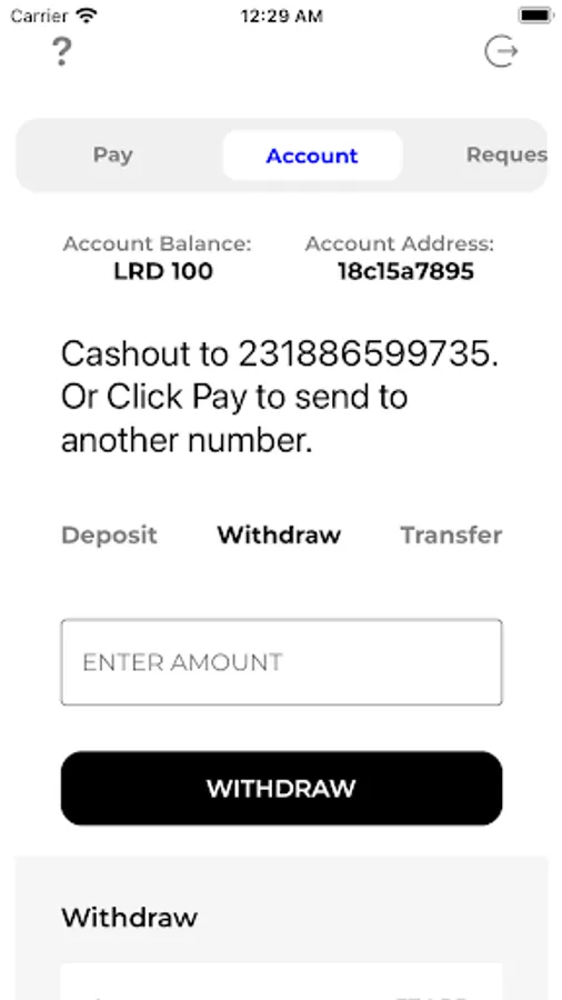 The Wallet allows users to deposit, withdraw, send, receive and transfer funds to mobile money numbers and within app. Can be used for sending money to love ones, paying for goods and services, bills, taxes, fees, and more.