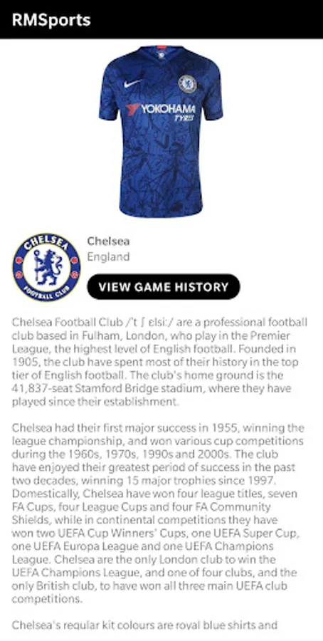 RMSports is a custom app that allows you to access various information about your favorite sports team which include:
