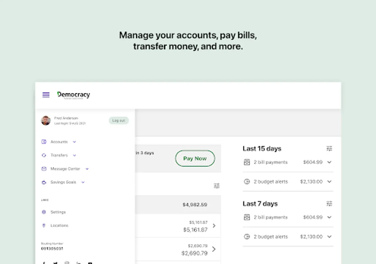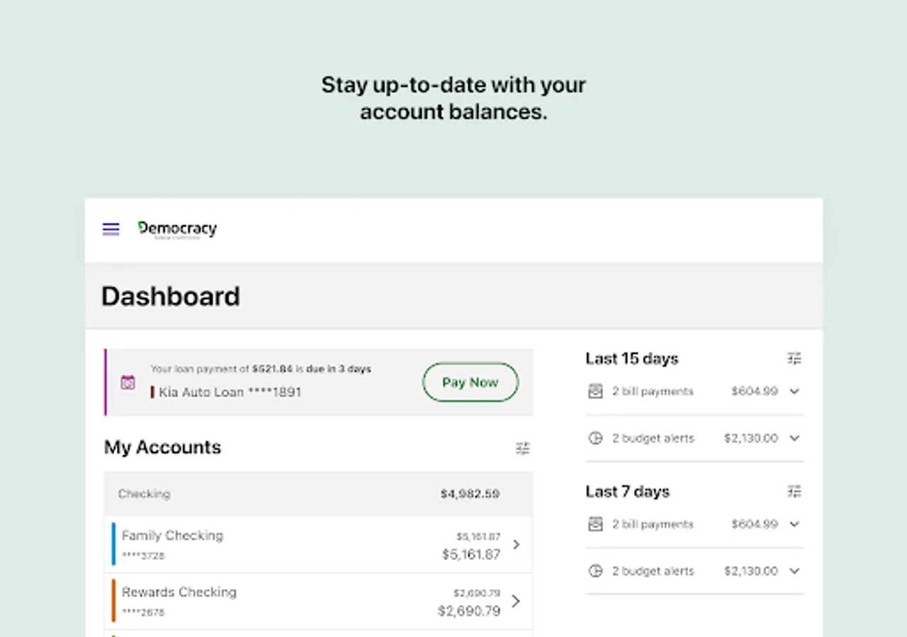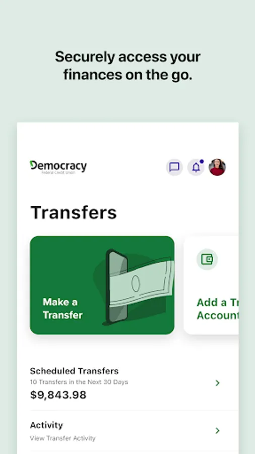 Bank wherever you are with Democracy FCU Mobile! Check balances, make transfers, Pay bills, find locations and deposit checks while you're on the go. For more information, go to democracyfcu.org.