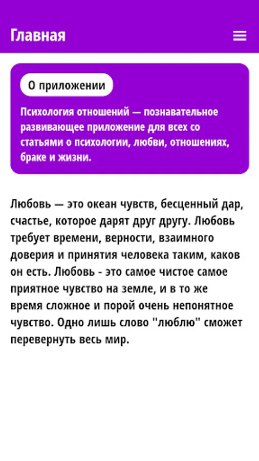 "Psychology of Relationships" - articles from experts and people with rich life experience on the topic of love, relationships, life, marriage. You will be able to better understand love psychology, masculine and feminine principles. You will know what to expect from the relationship and why your partners and loved ones are doing one way or another.