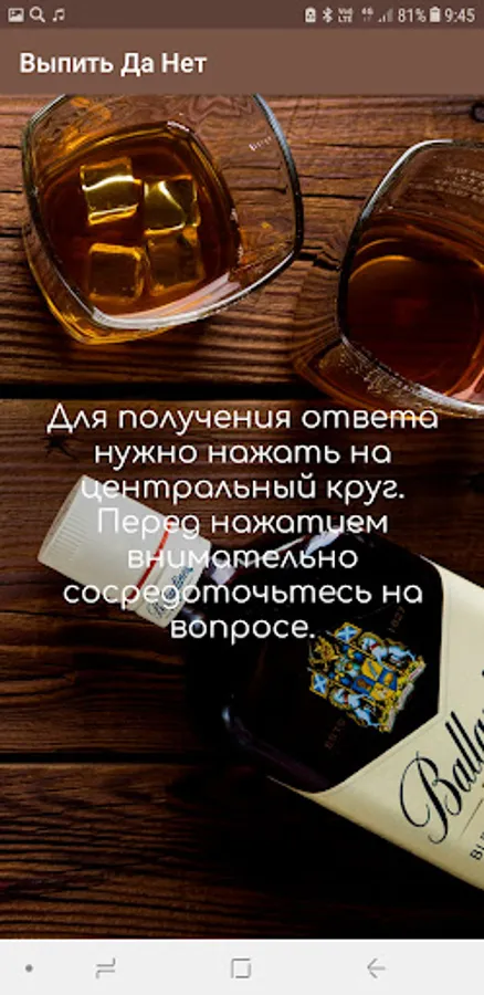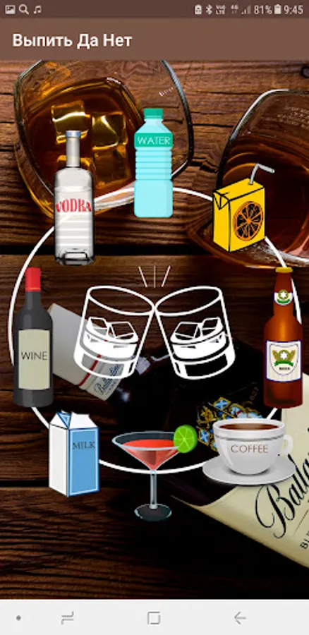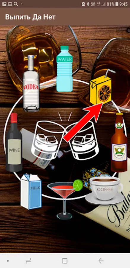 Simple and fast application "Alcohol roulette, drunk roulette" is designed for fun companies. Will it help you decide what to drink this evening - wine, beer, or maybe juice or water?