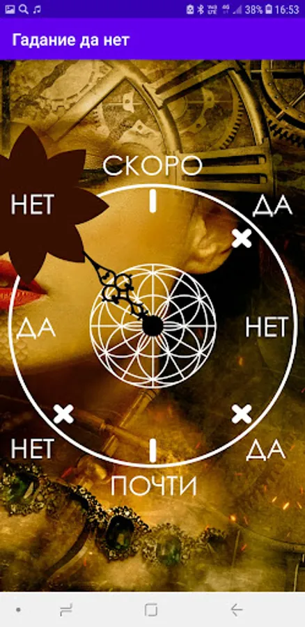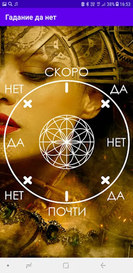 A simple and accurate "Yes No" divination with several possible answers: "yes", "no", "soon" and "almost". It can be used in any cases where no big philosophical digressions are required, but you just need to find out the answer to the question.