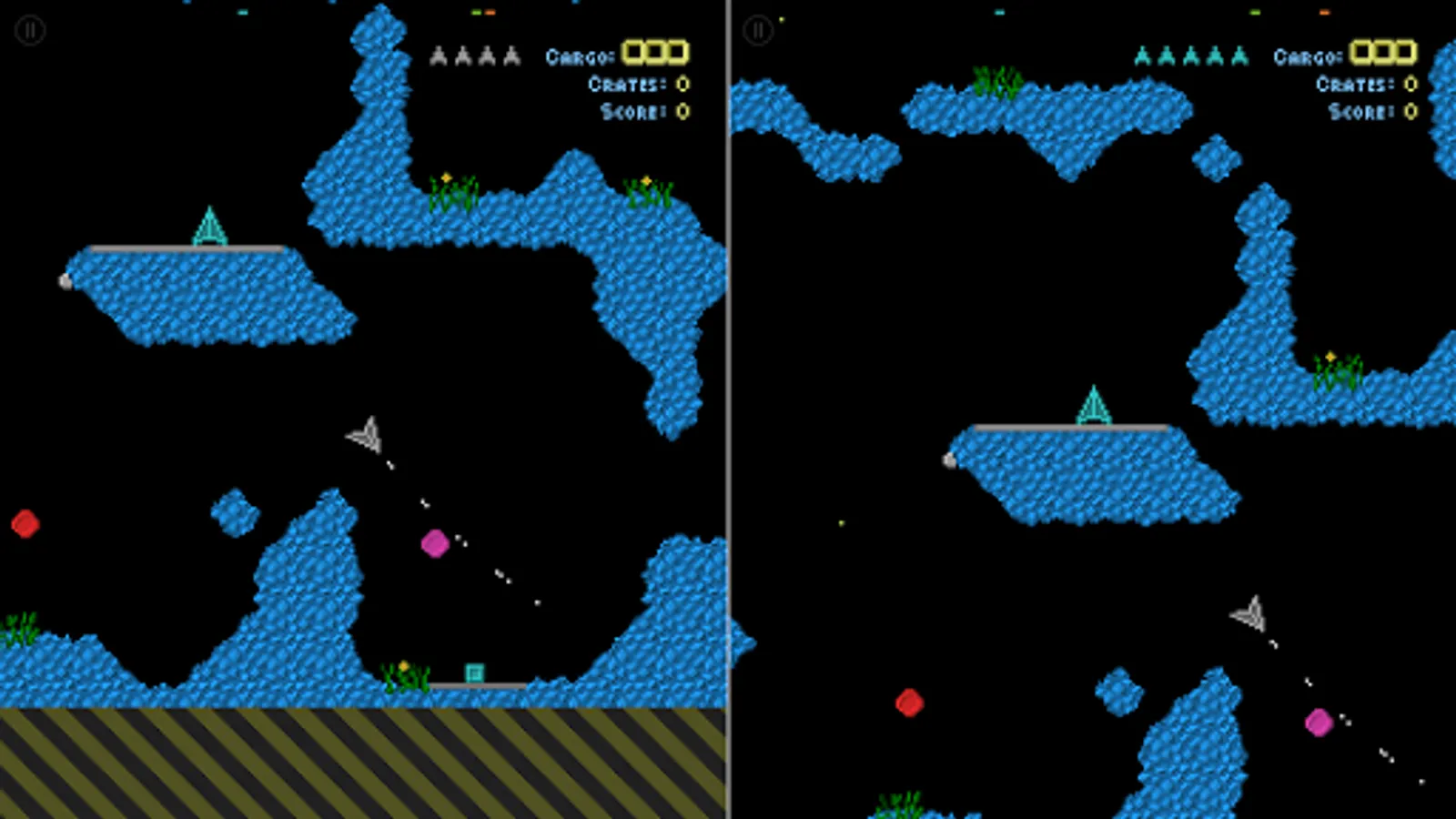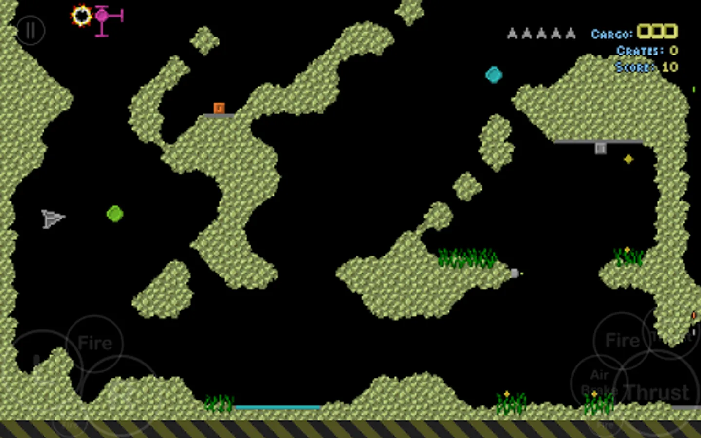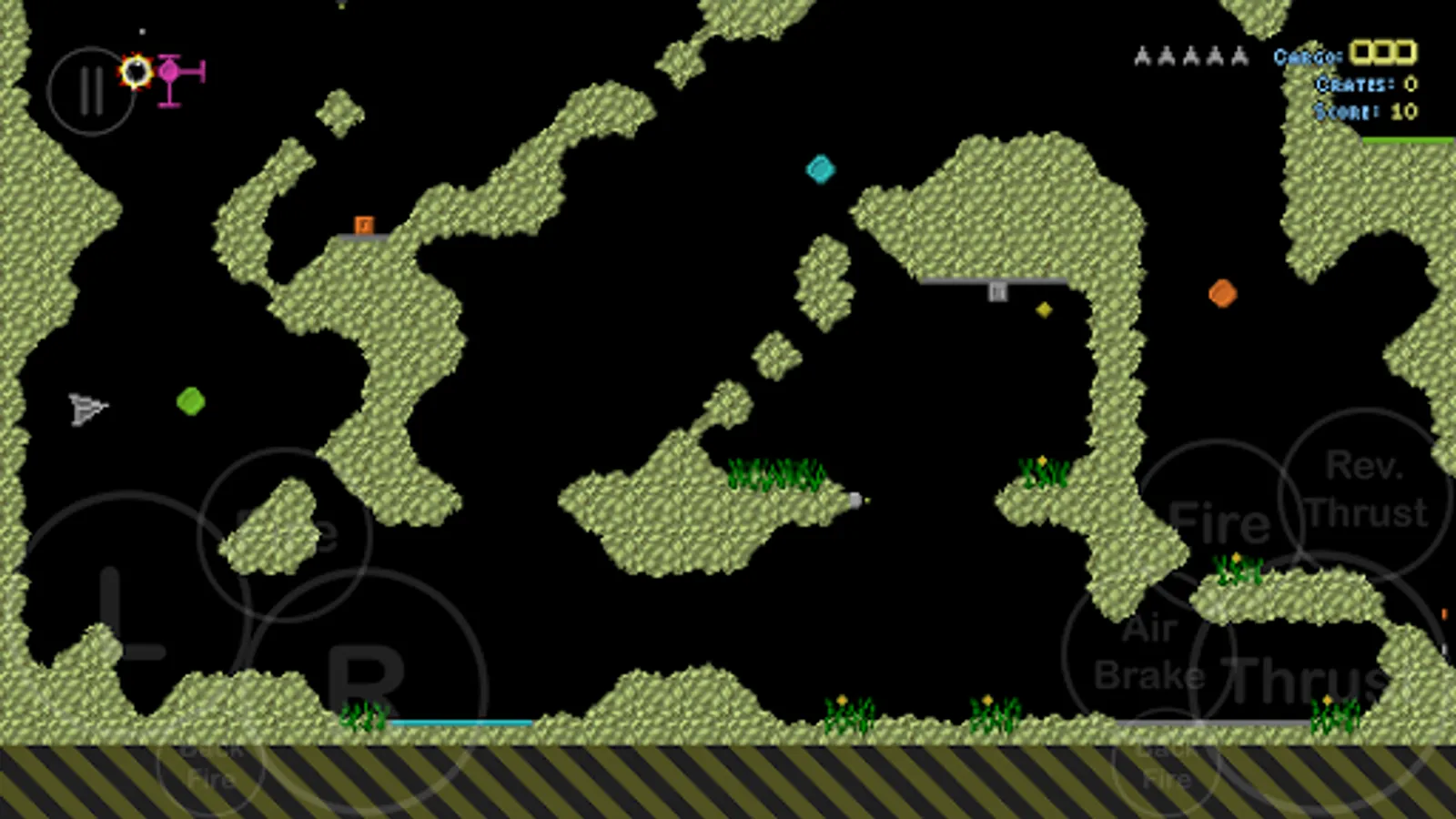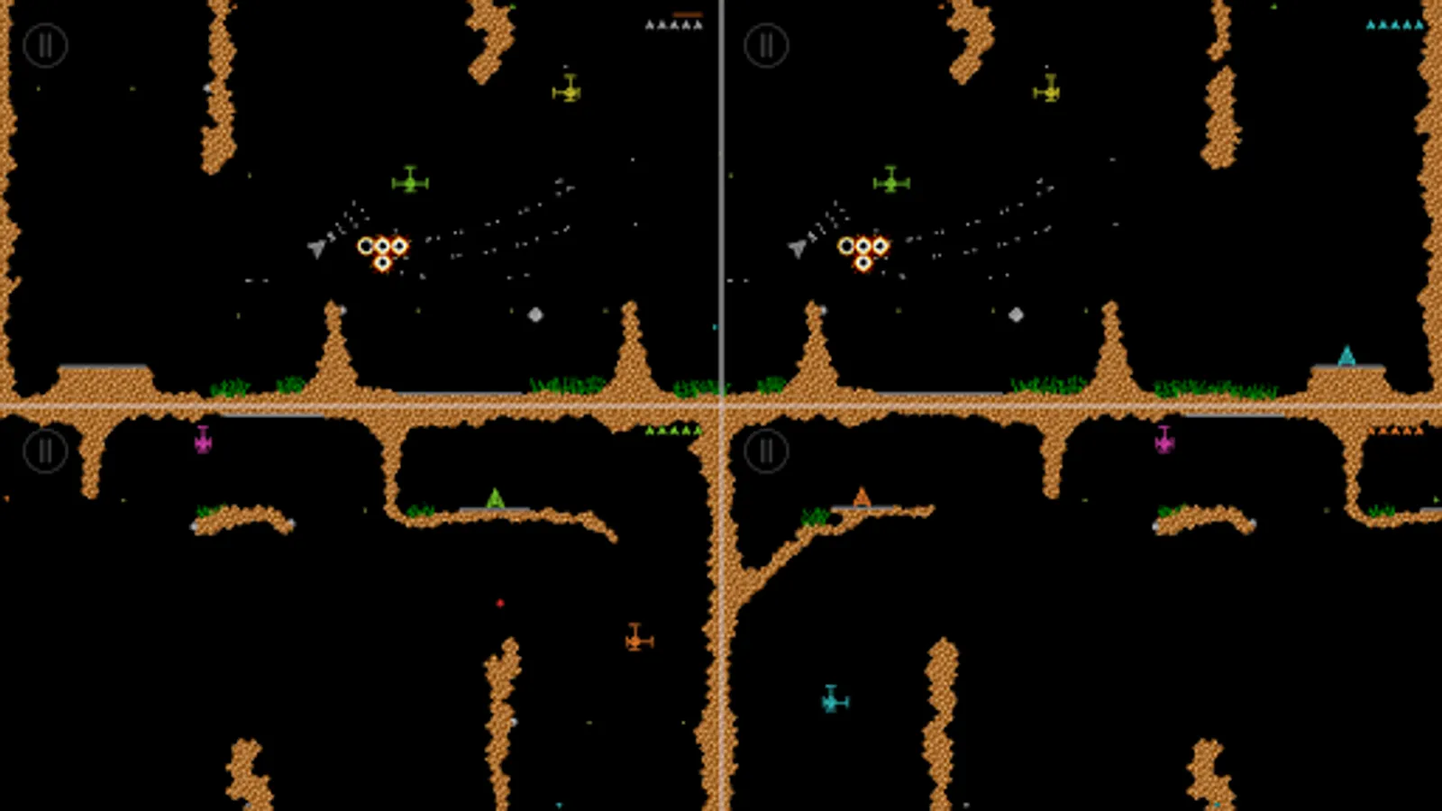 Super Grav is a retro gravity cave flyer for 1-4 players, featuring single player or co-op multiplayer missions, racing and dogfighting.