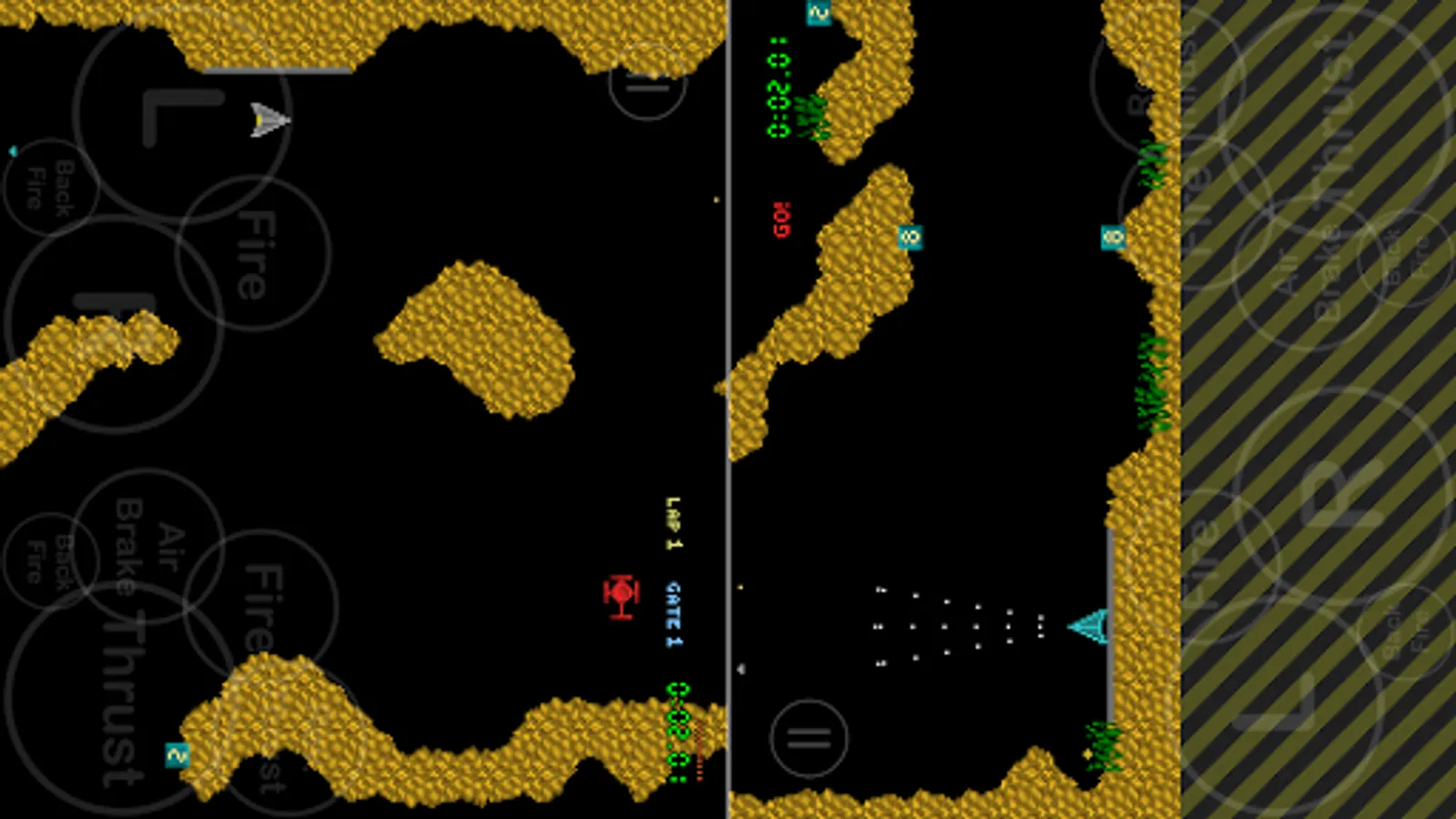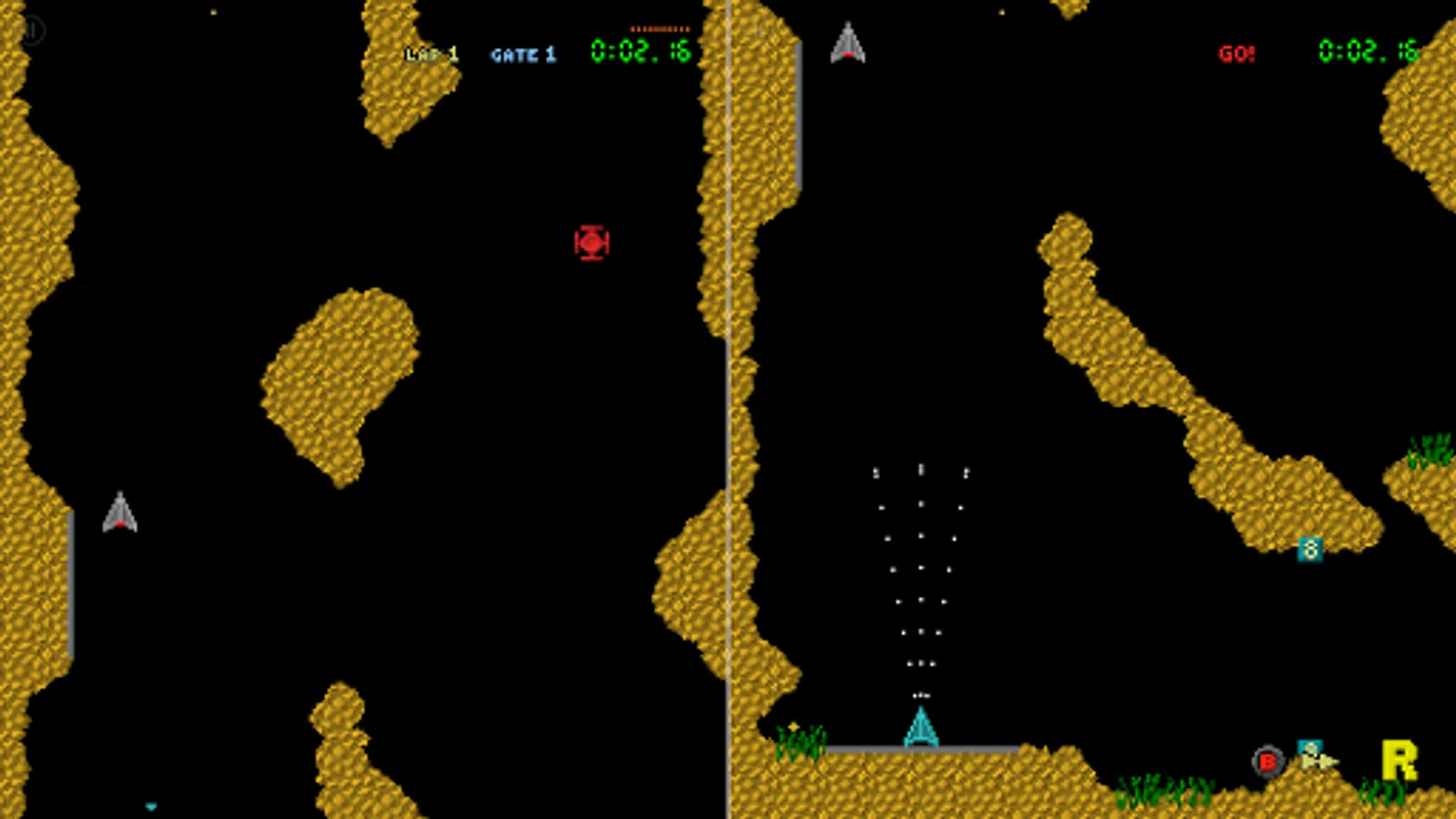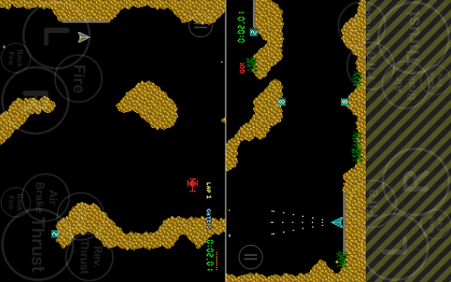 Race - Race laps around the caverns through the gates against the clock. Playable in single-player time trial or multiplayer race mode