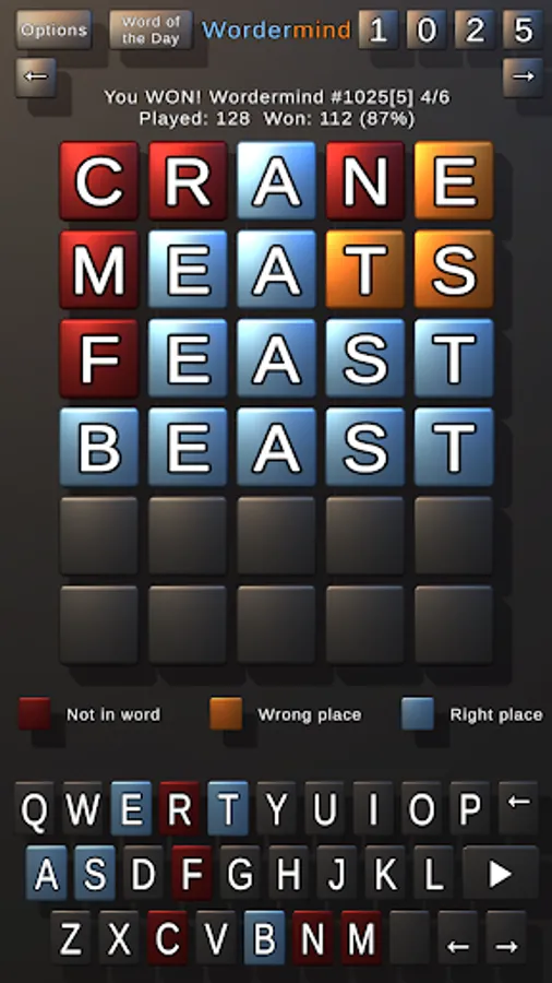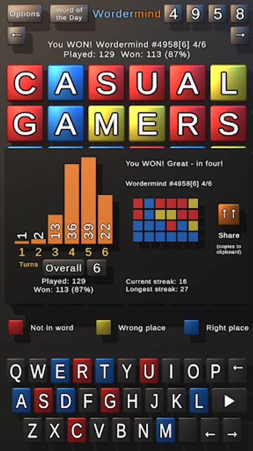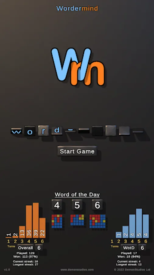 • Word of the Day for each mode - these are the same for everyone worldwide on that day!