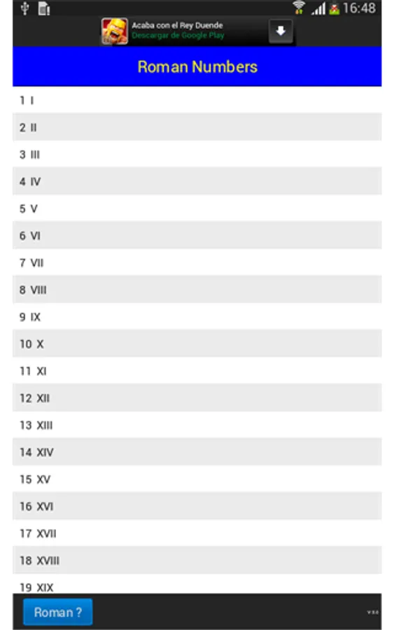 Type any number between 1 and 999999 and it will show you the equivalent roman number