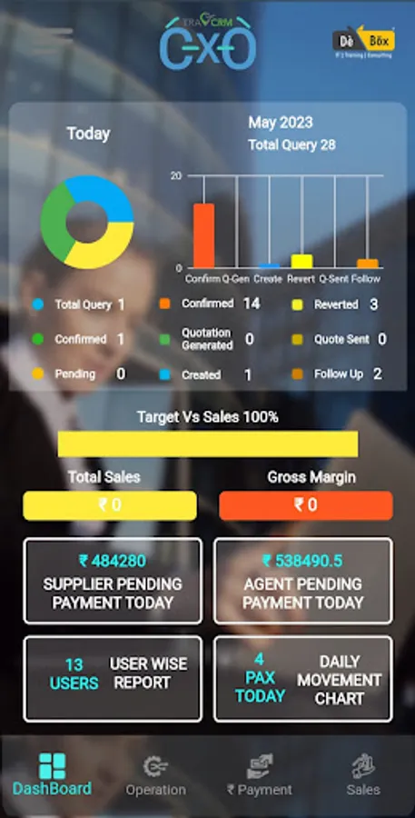 Dashboard to get complete information about queries, sales, gross margin and month wise query flow.