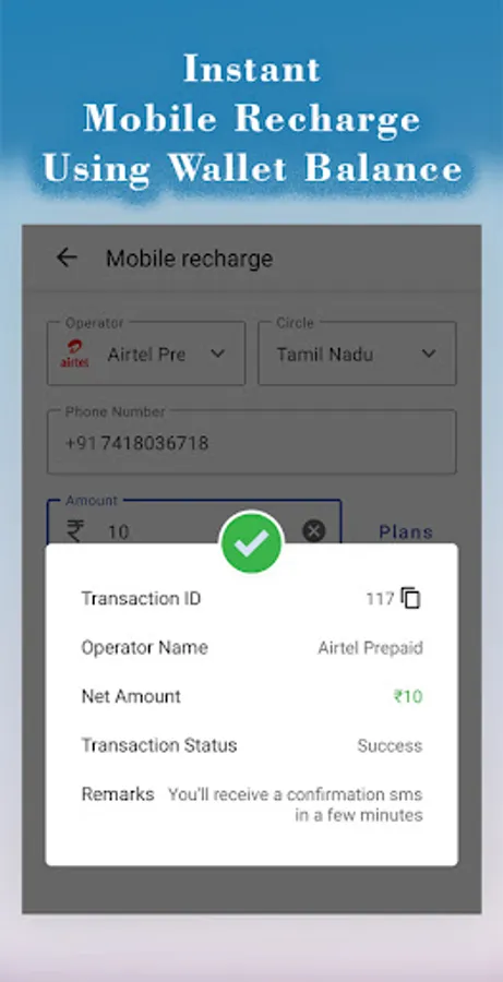 Instant Mobile Recharges: Top up your mobile credit instantly, regardless of your location. Wave goodbye to the inconvenience of hunting for recharge outlets or enduring lengthy queues.