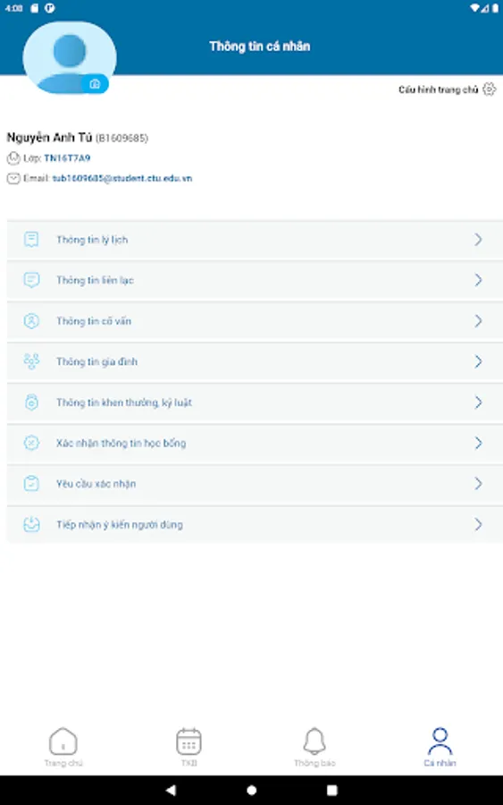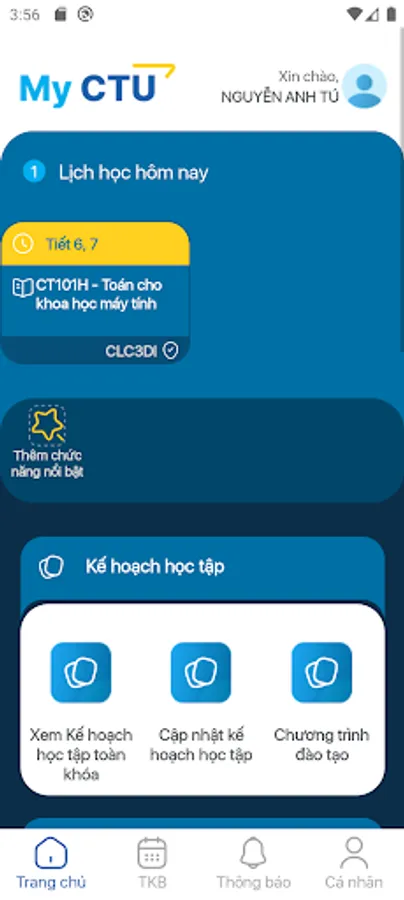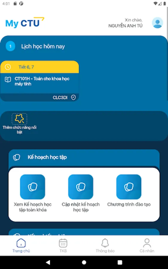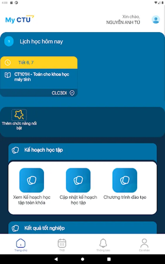 The application supports Can Tho University students to view study results, view exam timetables and class schedules, register for courses, receive notifications from the school