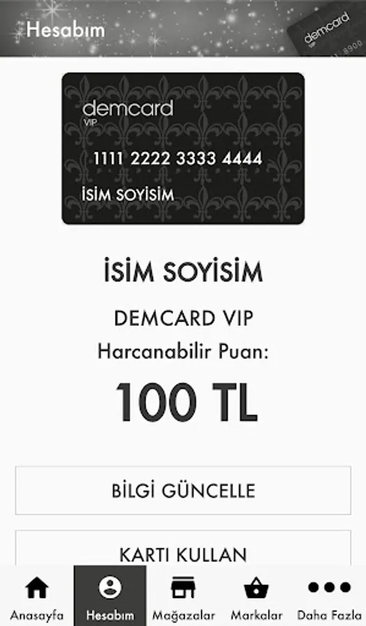 With Demcard, Demcard Silver, Demcard Gold, Demcard VIP and Demcard VIPPLUS, a certain portion of the expenses of our private customers in Demsa Group brands and stores are loaded on your card and you can use this amount at any time when you wish.