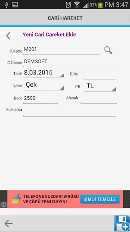 Current card unlimited girebilirsiniz.car can enter unlimited movement. Calls are made from the title. Current one-touch dial feature of the phone has vardır.email removal. There are sending sms feature. Is for visual graphics in the reporting section. You can not get a free version of our graphical report. Sqlite database is used. You can backup. Report Claims borrowing money you can receive and view the email.