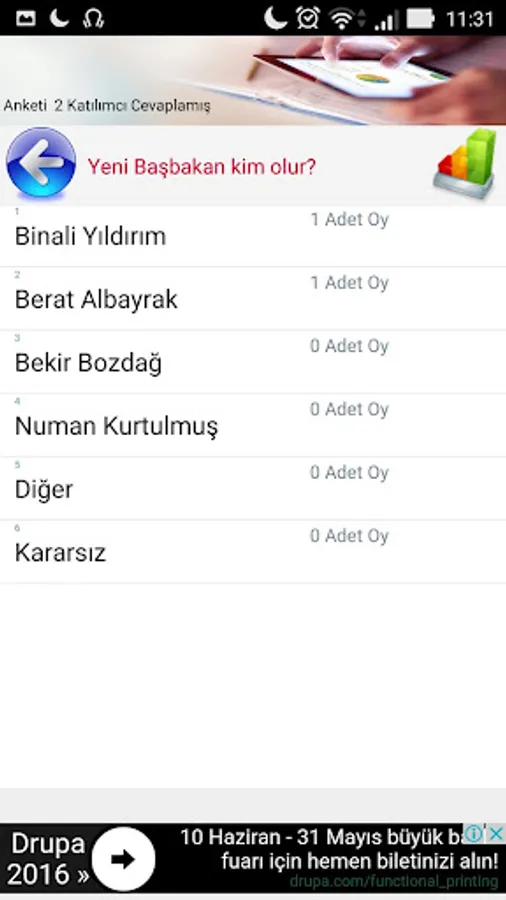 After voting results is automatically displayed.