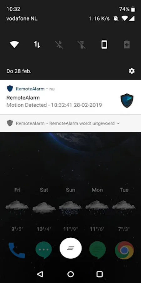 RemoteAlarm a remote alarm app for viewing and receiving notifications from Raspberry Pi with a motion camera.