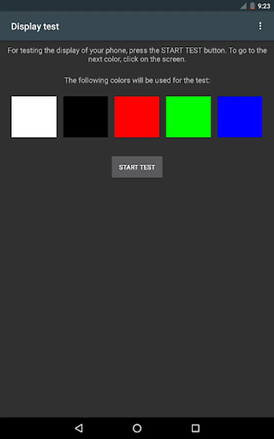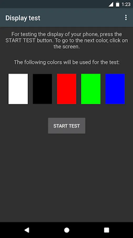 2. Carefully inspect the entire surface of the screen for the presence of different in color pixels after running the test.